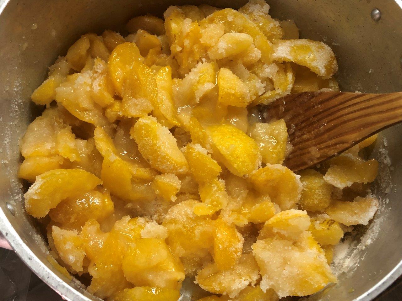 Ultimamente tenho usado, de vez em quando, Pectina, que é nem mais nem menos do que um gelificante extraído dos caroços das Maçãs. Claro que tem por lá mais umas coisas, como conservantes e uma tal de “Dextrose” que não faço ideia o que seja… Para mim, a Pectina tem duas grandes vantagens: leva menos Açúcar e está muito menos tempo ao lume. Fica com o sabor da fruta e não é como antigamente… quando os doces estavam horas ao lume e depois, passado pouco tempo, só sabiam mesmo ao Açúcar.
