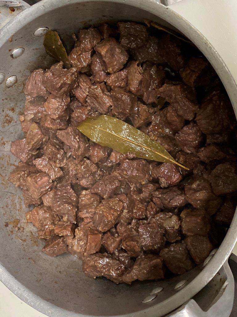 - Carne de vitela - 1 kg cortado em cubos, para guisar