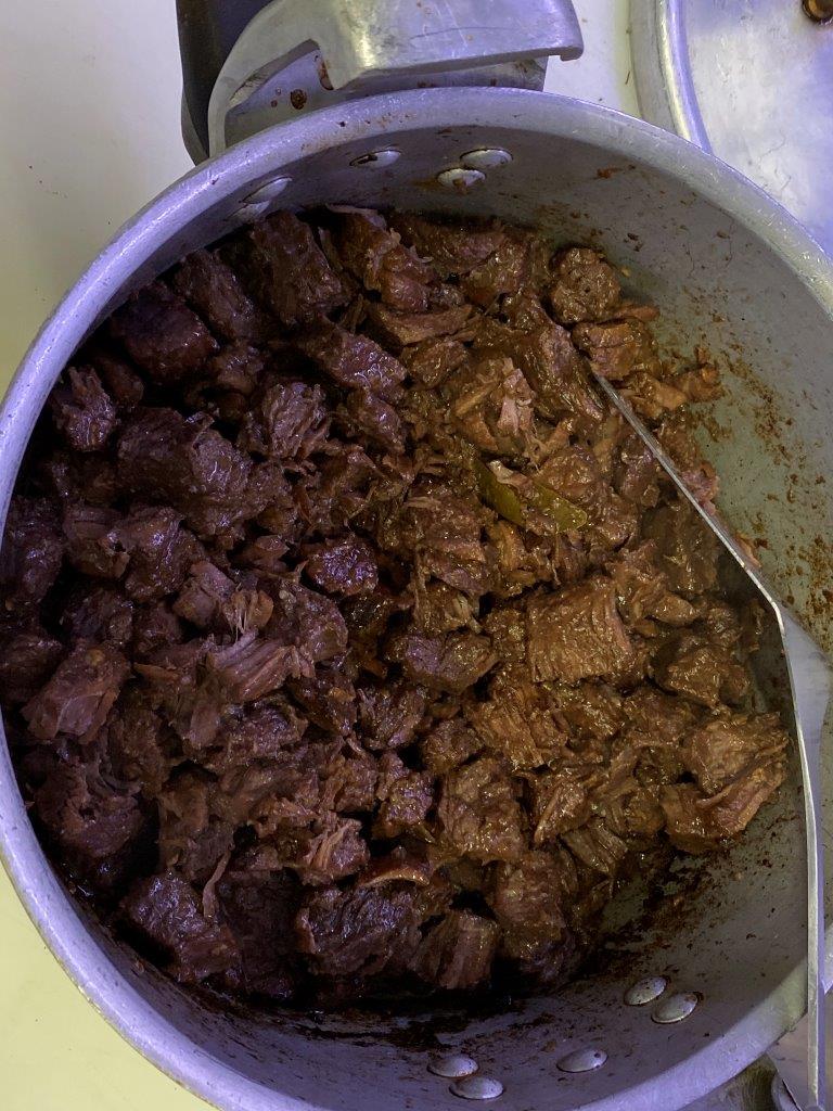 Mas desta vez experimentei fazer tudo de raiz. Fui ao talho, comprei vitela cortada em pequenos cubos e depois cozinhei-a em lume brando, até a conseguir desfazer com uma colher de pau.